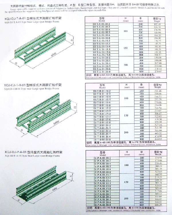 大跨距橋架 大跨距匯線橋架可分為梯級(jí)式、托盤(pán)式、 槽式。 梯級(jí)式匯線橋架具有良好的通風(fēng)性能,不防塵、不妨干擾。它適用于敷設(shè)計(jì)算機(jī)電纜 、通信電纜、熱電偶電纜及其它靈敏系統(tǒng)的控制電纜等,它對(duì)控制電纜的屏蔽干擾和重腐蝕環(huán)境中電纜的防護(hù)都有非常好的效果。