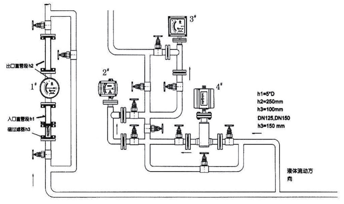 6)流量計安裝時要保證測量管的垂直度優于5%,且應加裝旁路,便于維護和清洗而不影響生產。