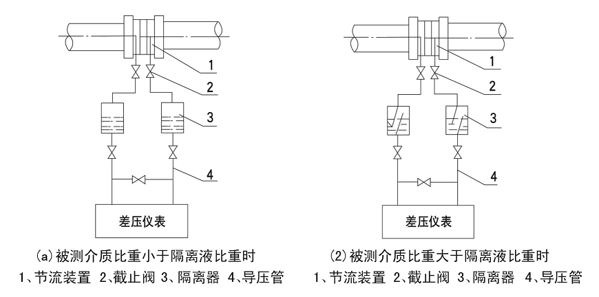 被測流體為腐蝕性液體、氣體時,信號管路的安裝方式如圖。
