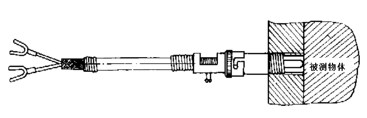 WRNT-01、WRET-01型壓簧式固定熱電偶的安裝方法如下圖所示,固定安裝在被測物體上面,先將連接螺栓擰緊在被測 物體上,再將熱電偶緊貼被測物,擰緊卡套螺釘,最后擰上鎖緊卡套。