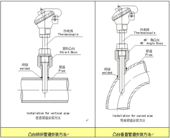 1、熱電阻、熱電偶安裝45°角凸臺