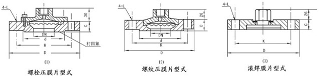ML-螺紋式(≤60MPa) MF-法蘭式(≤25MPa) MF10-工字形法蘭式(≤4MPa) MC-夾子式(0.1~2.5MPa) MN-螺母式(0.1~2.5MPa) MZ-螺栓式(1~25MPa) MH-均質機用(10~60MPa) |